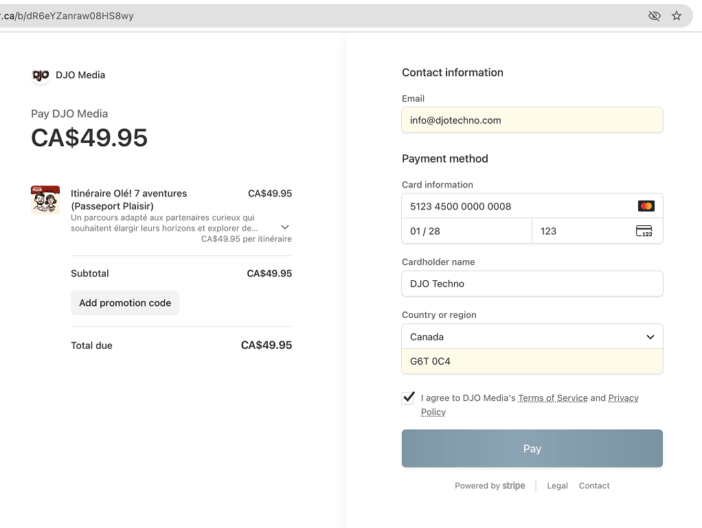 Prenons en guise d'exemple un couple fictif (appelons-les Sophie et Simon) qui décider d'acheter un itinéraire Olé! 7 aventures à partir du site passeportplaisir.ca à la fin d'une soirée pas pire arrosée.